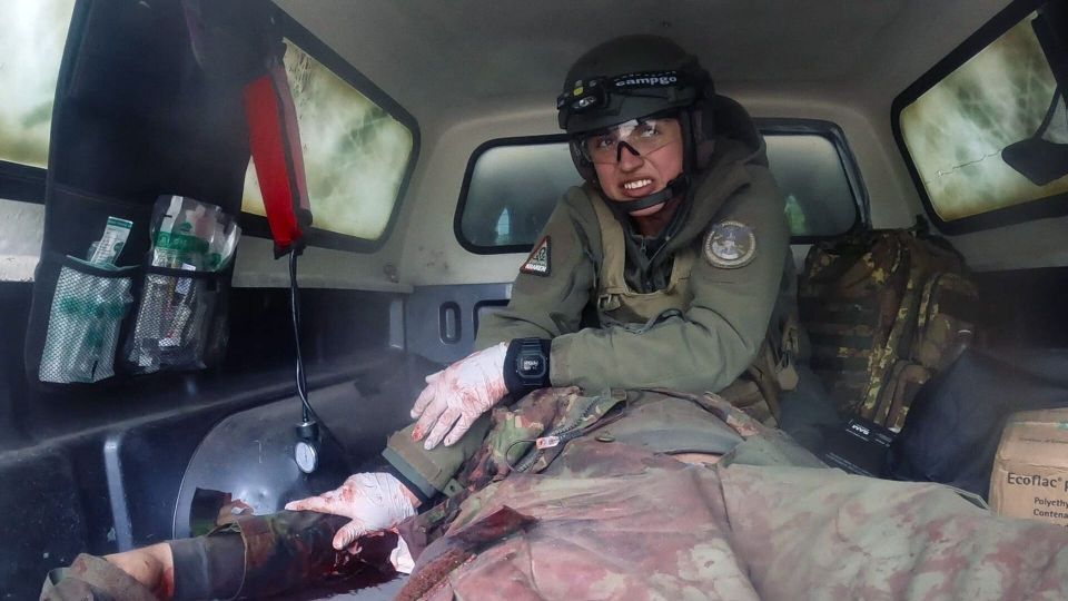 Alors que les bombes résonnent au-dessus de leur tête, deux jeunes femmes tentent de s’abriter sous un préau décati… et de braver la peur avec une sacrée dose de sarcasme. Engagées dans l’armée ukrainienne depuis 2014 pour l’une et depuis 2022 pour l’autre, Yulia Sidorova — pseudo militaire : « Cuba », styliste à la ville — et Oleksandra Lysytska — dite « Alaska », « parce [qu’elle] est glaciale » — sont des combat medics, secouristes chargées d’évacuer et de soigner les blessés de guerre, dans la région de Kharkiv.